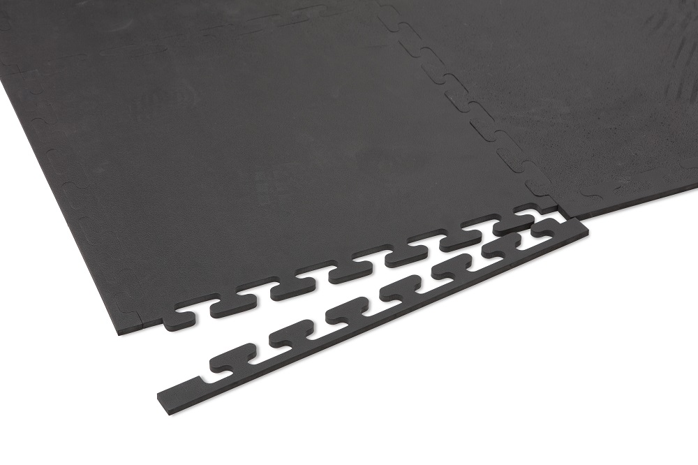 Produsert i miljøvennlig EVA materiale som også er resirkulerbart. Gulvet er luktfritt og tåler vann. Settet består av 4 ruter og 8 kanter som kan utvides med flere sett etter behov. Leveres i sort farge. Tykkelse 1 cm. Størrelse pr. rute inklusive kanter: 52 x 52 cm. Total størrelse pr sett (4 ruter inklusive kanter): 102 x 102 cm.