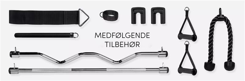 Det er 8 kabeldrag fester hvor du kan utføre en uendelig mengde med forskjellige øvelser. Alt fra benkpress, knebøy og markløft, til biceps curl, triceps press og rotasjons øvelser. Bare fantasien setter en stopper.