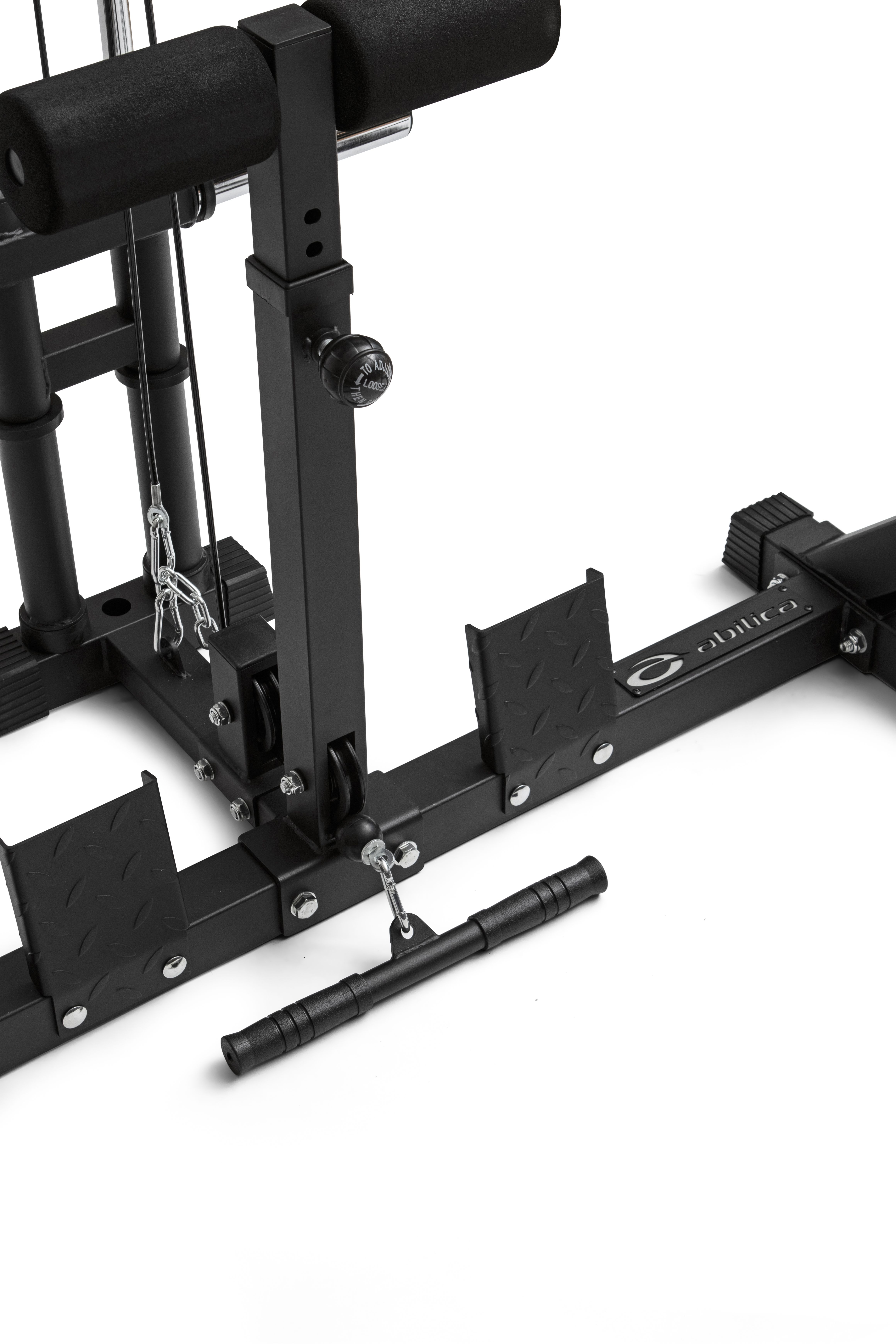 Stasjon for nedtrekk og sittende roing til Abilica PowerRack 40 og Abilica HalfRack 40. Passer også til Abilica HalfRack 010 hvis du har det fra før. Abilica Lat-Attachment 40 er utstyrt med justerbar lårpute som gjør det enkelt for deg å holde posisjon ved vertikale dra-øvelser som eksempelvis nedtrekk. For deg som liker sittende roing kan du også sette på de medfølgende fotplatene som gir deg ekstra godt fotfeste ved horisontale dra-øvelser.