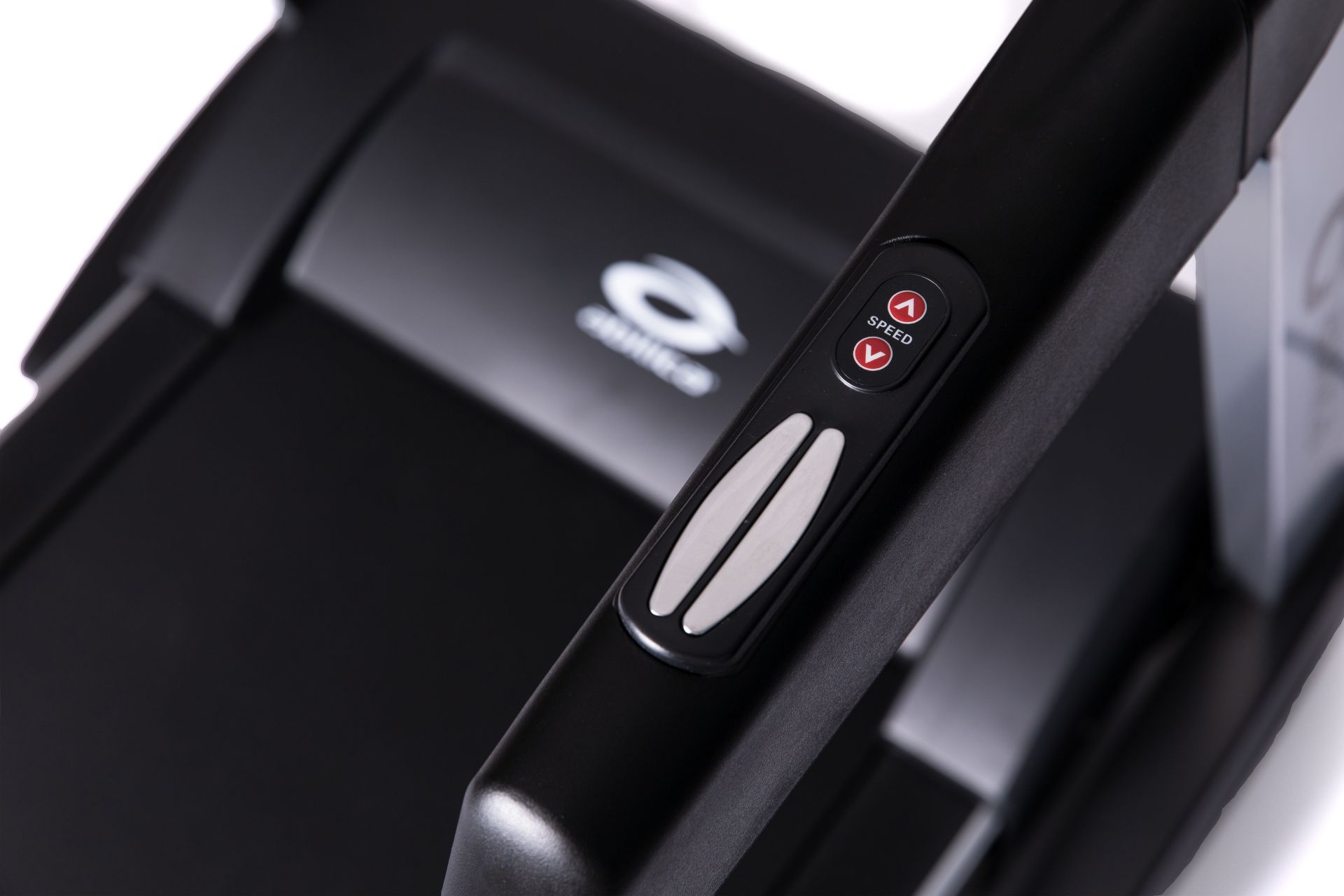 Tredemøllen har hurtigtaster for fart og stigning og høyttalere med kablet tilkoblingsmulighet for lydavspilling. LCD-skjermen som viser tid, hastighet, distanse, kaloriforbruk og puls gjør det lett å følge med på utviklingen i treningen din.