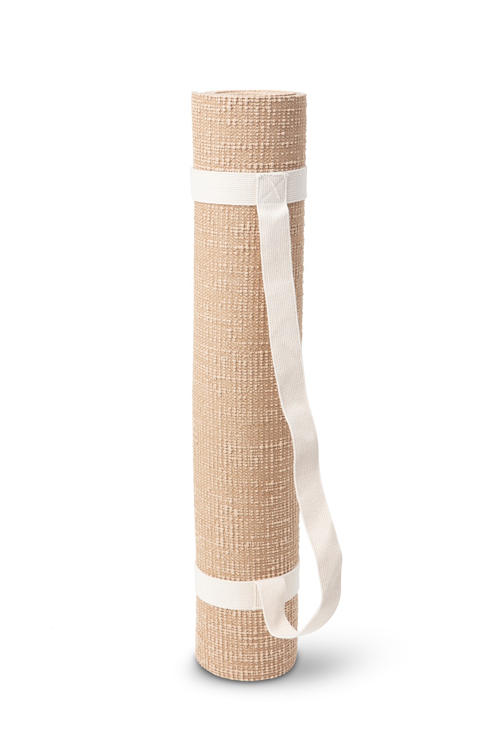 Yogamatten leveres med bærestropp i 100% ubleket bomull. Fargen er sand.