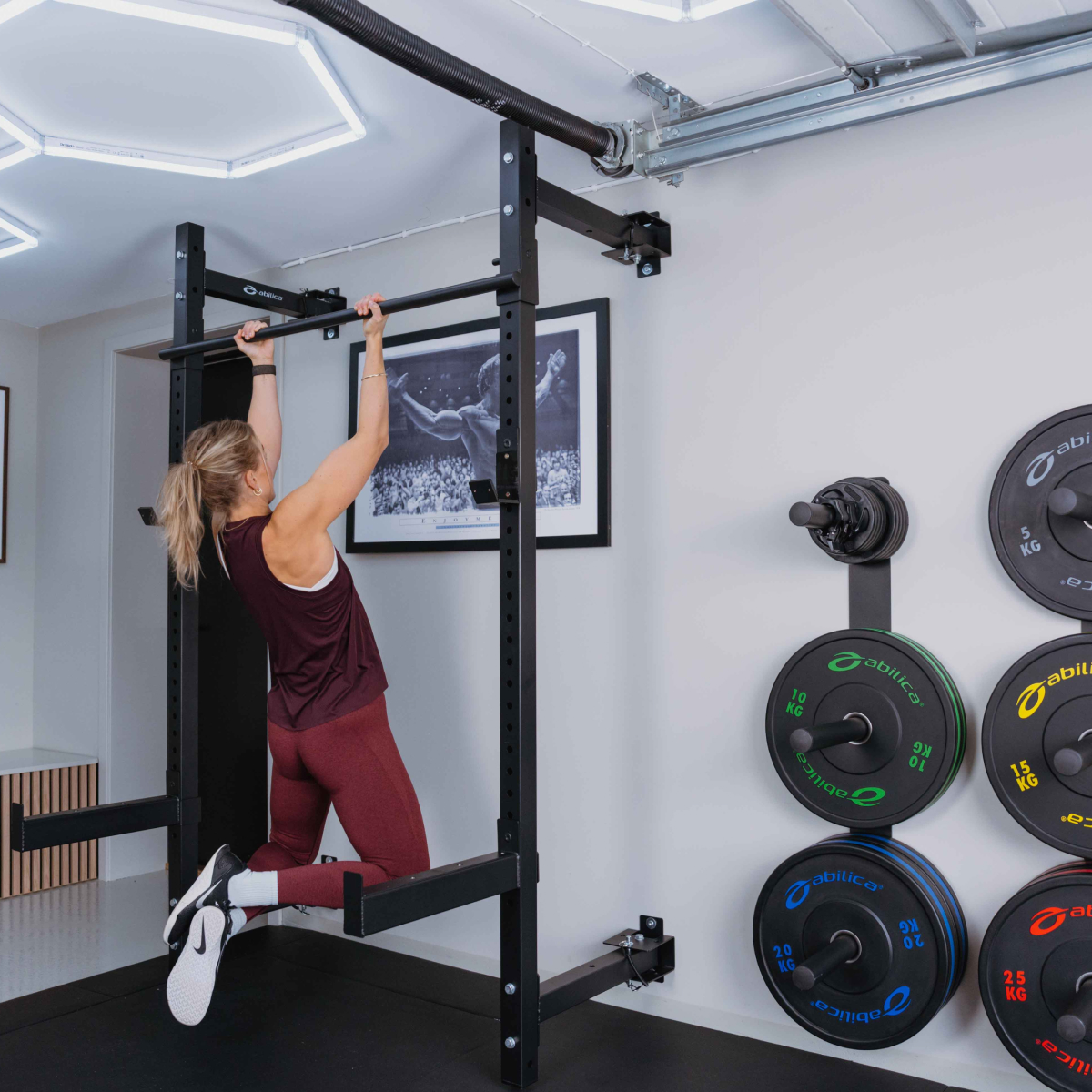 Abilica FoldableRack 50 er et gjennomtenkt valg for deg som ønsker et robust, trygt og plassbesparende rack som gir full funksjonalitet for styrketrening hjemme, uten å oppta unødvendig gulvplass.