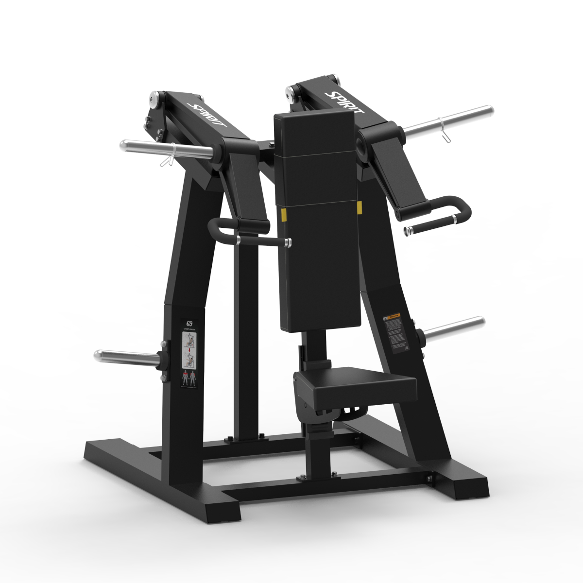 Spirit tilbyr robuste prestasjonsstyrke treningsmaskiner som hjelper idrettsutøvere å nå sine mål. Plate Loaded-serien SP-45 kombinerer funksjonelle deler av styrketreningsutstyr med brukervennlige og vel gjennomtenkte designelementer som appellerer til både nybegynnere og erfarne idrettsutøvere. En av de imponerende maskinene i denne serien er Spirit SP-4503 Plate Loaded Shoulder Press, som trener bryst, deltoider og triceps, og bygger muskelvev og styrke.