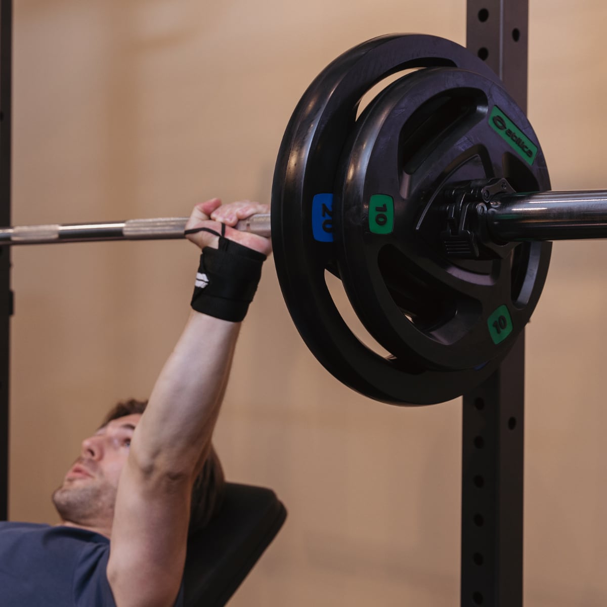 Abilica Wriststrap gir god støtte til håndleddet i utsatte øvelser med stenger og manualer, blant annet benkpress og skulderpress.
