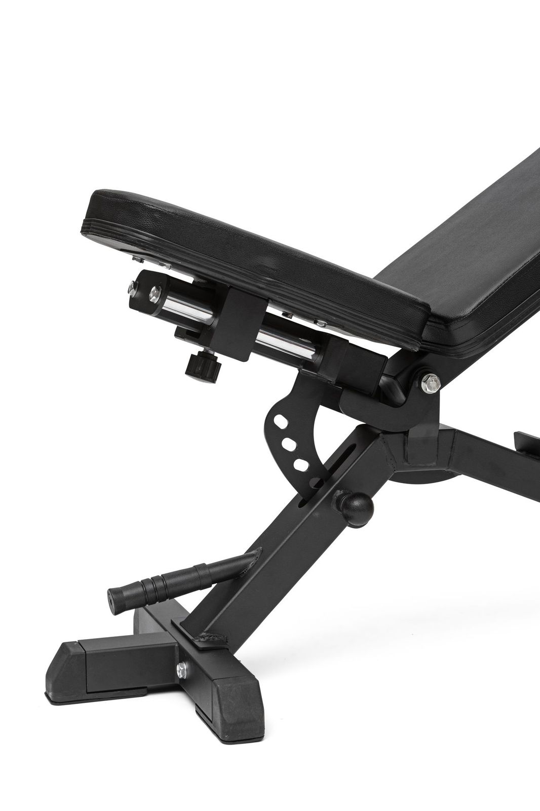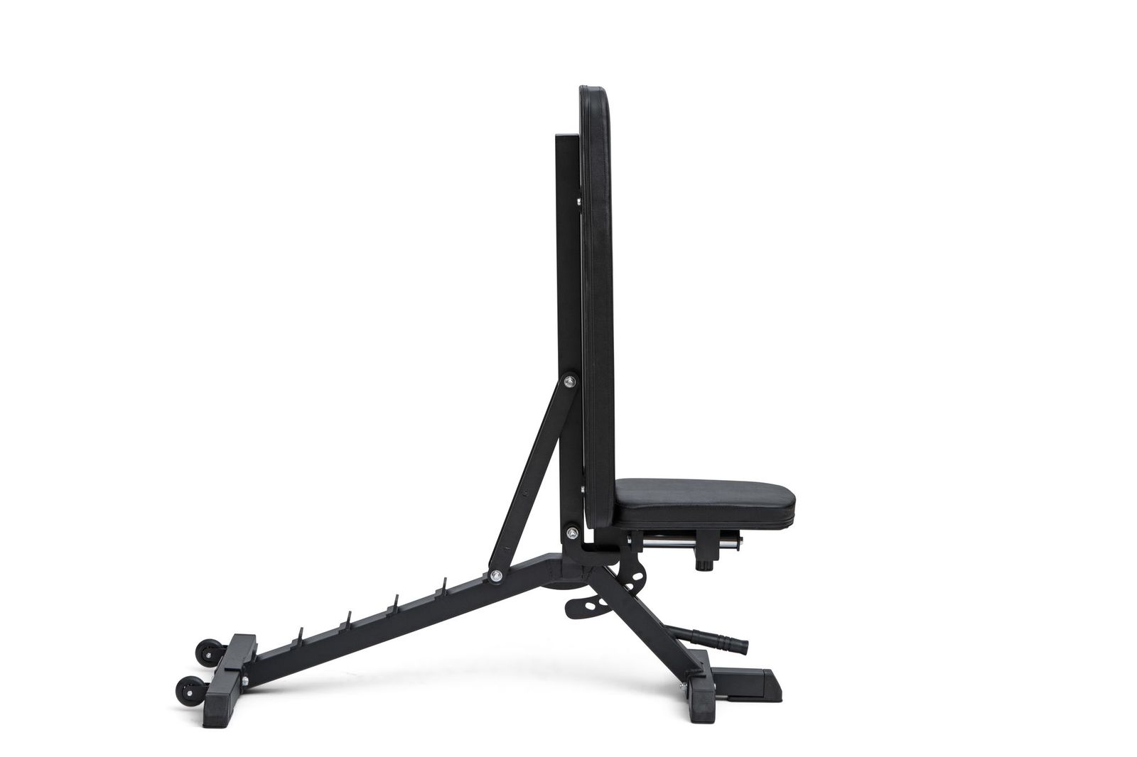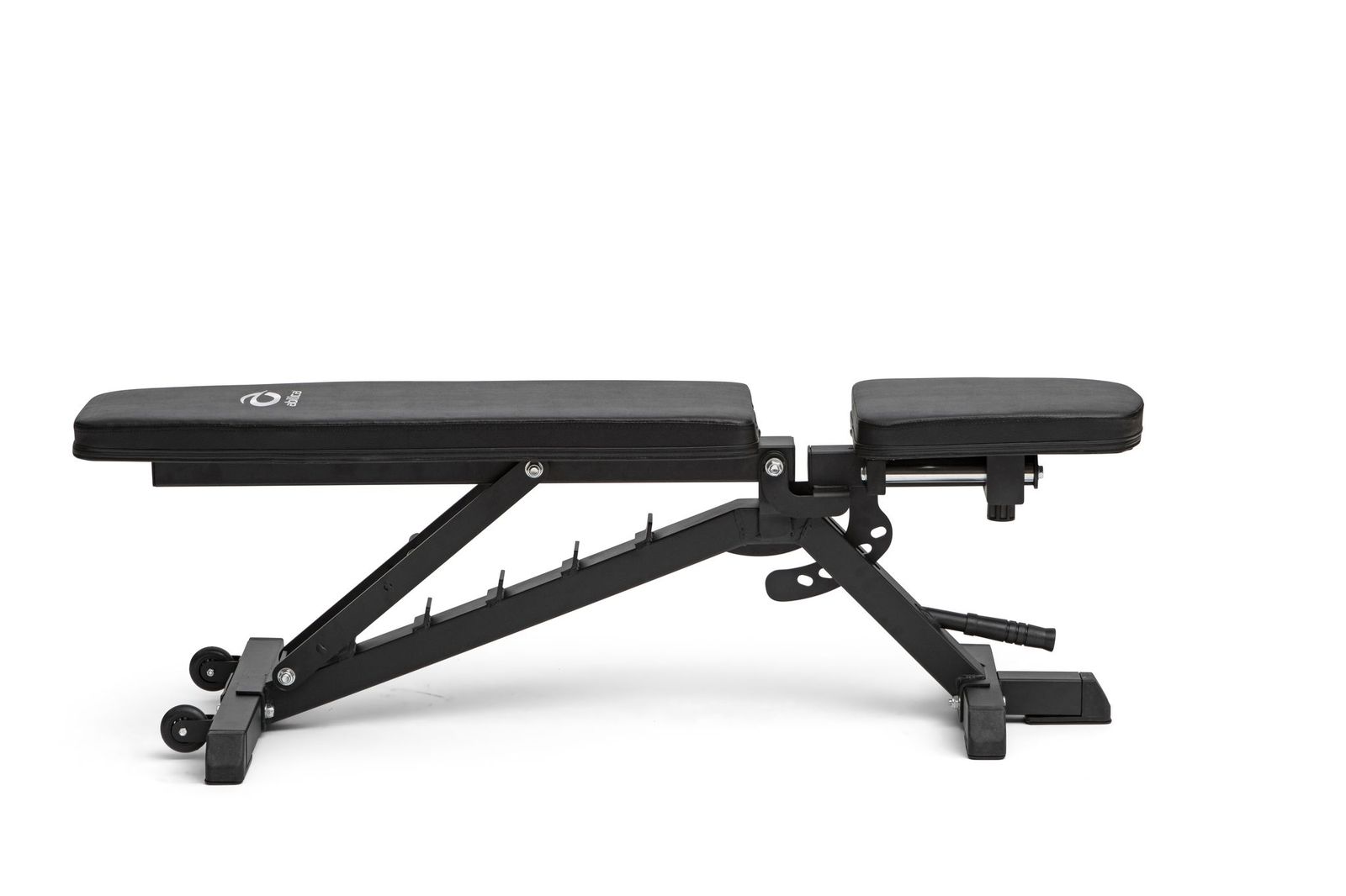 Ryggputen har 7 justeringsnivå som kan justeres fra -15° opptil 85°. Med en svært lang og bred ryggpute på 90 × 30 cm er dette en benk som er godt egnet for alle kroppshøyder. Sitteputen er utstyrt med den unike «zero-gap» løsningen som eliminerer alt mellomrom mellom sete og rygg uansett hvilken vinkel du velger. Dette sikrer at du finner avstanden du trenger for en optimal løfteteknikk. Høyden fra gulvet til sittepute er 45 cm og er spesifikt designet for at du skal kunne ha et godt fotfeste under pressøvelser. Benken er også utstyr med håndtak og hjul som gjør den enkel å flytte rundt.