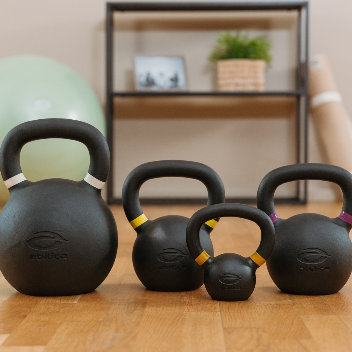 Abilica KettleBells har en flat base som gjør de svært stabile når de er plassert på bakken. Hver kettlebell er merket med vekt i både kilo og pund i tillegg til å ha sin unike fargekode som gjør den enkel å identifisere. Finnes i 4 kg til 48 kg.