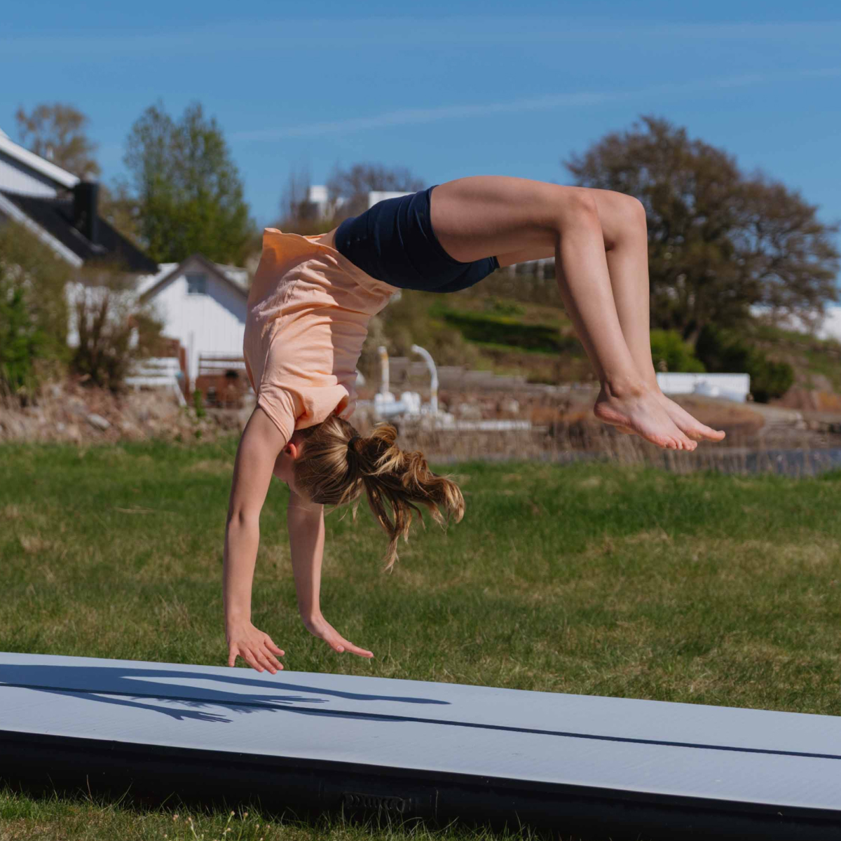 Passer for både nybegynnere og aktive utøvere. Kan brukes både inne og ute, og i vann. Perfekt til å øve slå hjul, flick-flack, araber, salto og andre øvelser. Abilica AirTrack egner seg svært godt som treningsmatte for gymnastikk, cheerleading og tumbling.