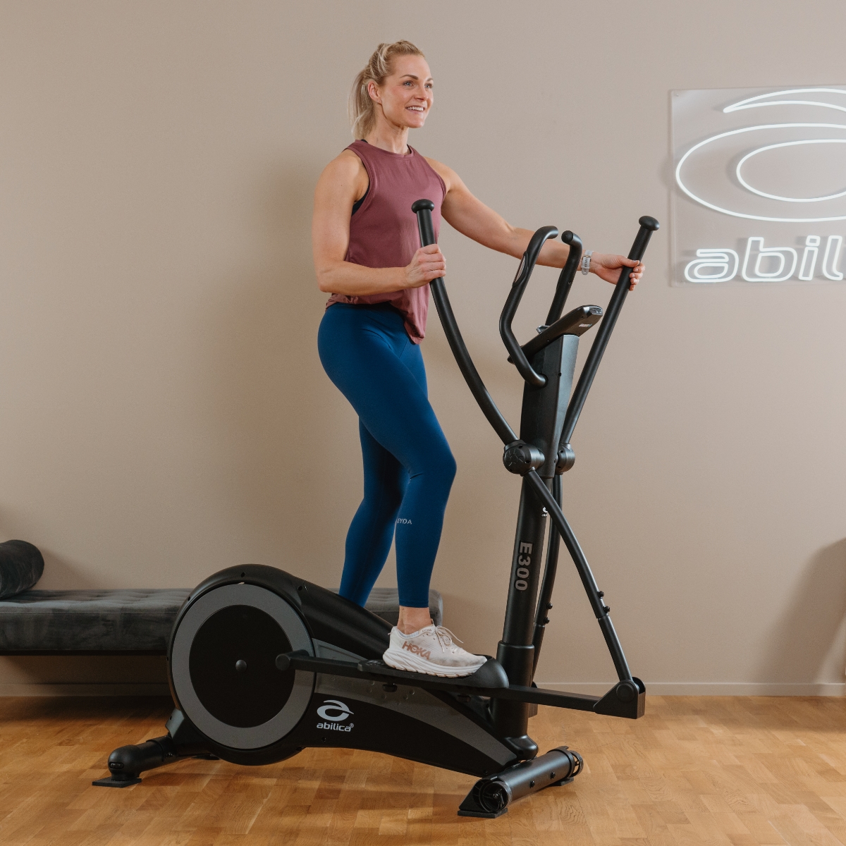 Abilica E 300 er en ellipsemaskin som passer for deg som ønsker et solid og allsidig kondisjonsapparat. Den har en god steglengde på 40 cm, slik at musklene i lår og sete blir godt aktivert under treningen. Solid rammekonstruksjon gjør den stødig og stabil, selv når du trener på høy motstand.