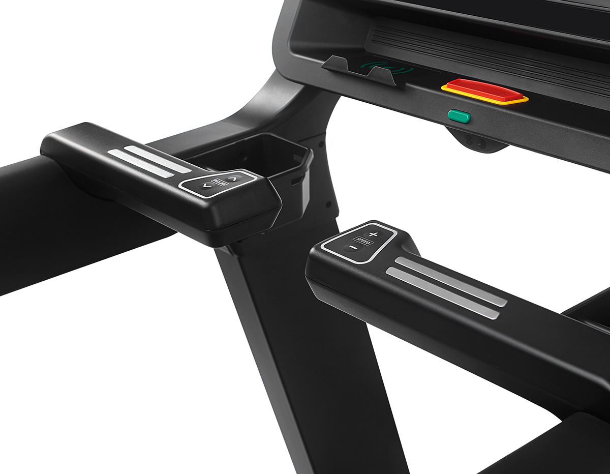 Her får du alt du trenger for å trene trygt, effektivt og variert – fra intervaller i høy fart til lange økter med motbakke. Tredemøllen har praktiske lyssignaler på siden av håndtakene for å indikere at den er i bruk.