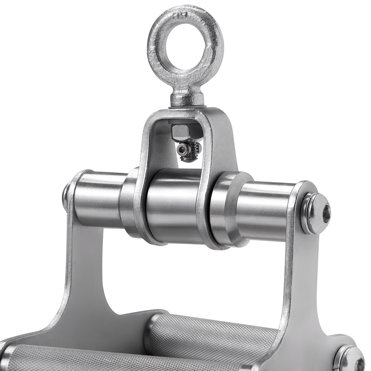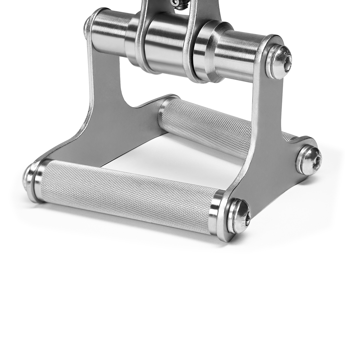 Håndtaket har en svivel av høy kvalitet som tillater to-ledds rotasjon, noe som gjør det ideelt for øvelser som nedtrekk og sittende roing, både med én eller to armer. Med en kompakt størrelse og en avstand på 12 cm mellom håndtakene, gir den optimale grepsmuligheter og komfort.