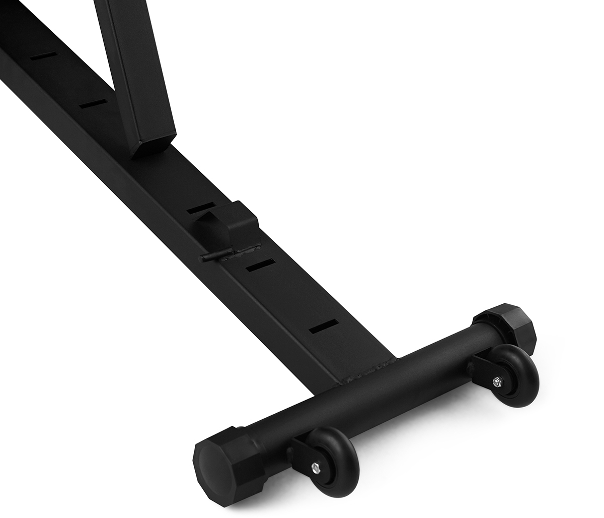 Den smarte og sammenleggbare konstruksjonen gjør benken enkel å oppbevare, selv i små rom. Med praktiske transporthjul og håndtak kan du enkelt flytte benken etter behov. Gummibeskyttelse under føttene sørger for god stabilitet og beskytter gulvet mot riper og slitasje.