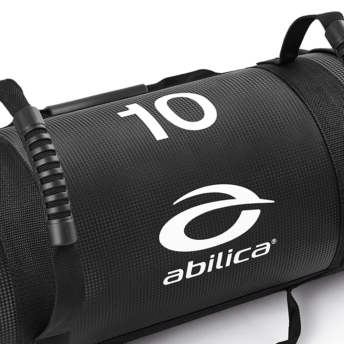 Abilica SandBags er tilgjengelige i vektklasser på 10 kg, 20 kg og 30 kg, slik at du enkelt kan velge riktig belastning basert på treningsnivå og målsetting. Sandbagene er produsert i to-lags PVC og composite mesh, med robuste stropper i polyester og nylon. De seks ergonomiske håndtakene gir et sikkert grep og mange øvelsesmuligheter, uansett intensitet. Fyllet består blant annet av EVA-skum ytterst og jernsand i midten, noe som sikrer god tyngdefordeling under trening.