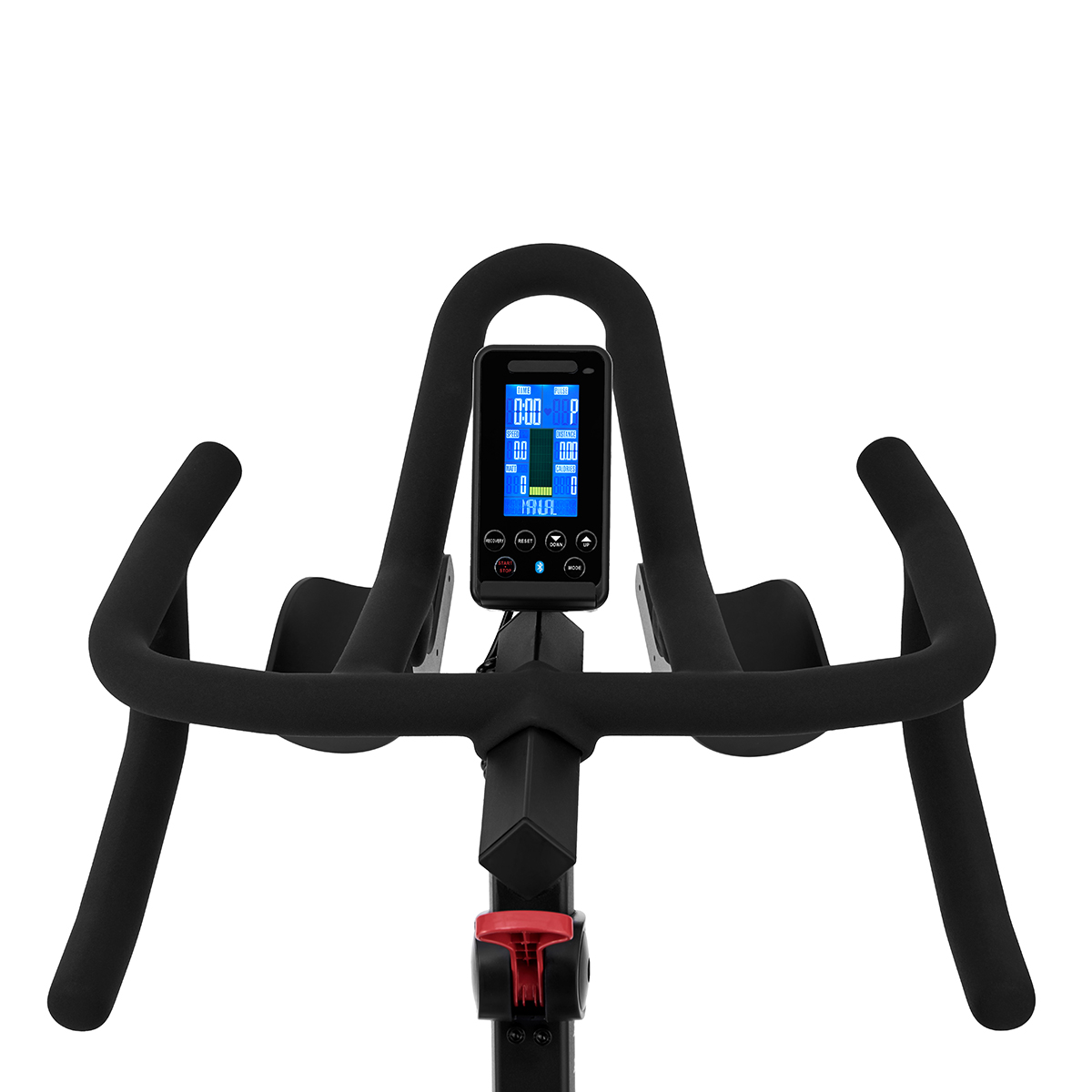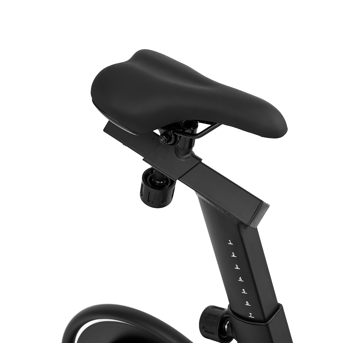 - Spinningsykkelen er utstyrt med et profesjonelt styre som gir flere grepsposisjoner, perfekt for ulike typer trening, inkludert triatlon. Både styret og setet kan justeres horisontalt og vertikalt, slik at du alltid får optimal sittestilling.