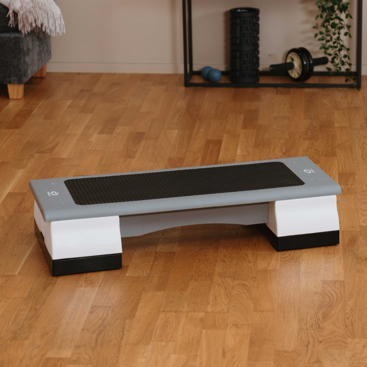 Gummibelagt overflate gir ett godt fotfeste og du både står, ligger og sitter stabilt avhengig av hvilken øvelse du kjører. Stepkassen er produsert i myk plast som demper steget og er skånsom mot knærne.