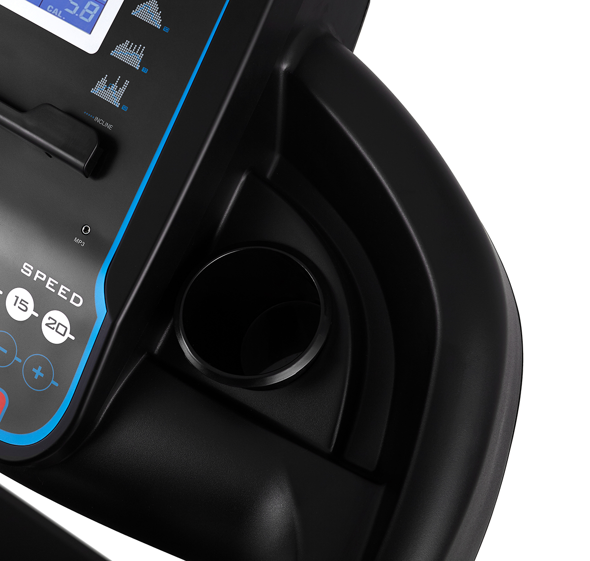 Tredemøllen er utstyrt med en 2,5 HK DC-motor og har en toppfart på 22 km/t, noe som gjør den egnet for alt fra rolige økter til mer krevende intervaller. Den elektroniske stigningen i 15 nivåer gir gode muligheter for motbakketrening og økter som utfordrer både teknikk og kondisjon. Løpeflaten på 52 × 155 cm gir trygghet ved høyere hastigheter, og det innebygde dempesystemet gjør treningen mer skånsom enn på hardt underlag.