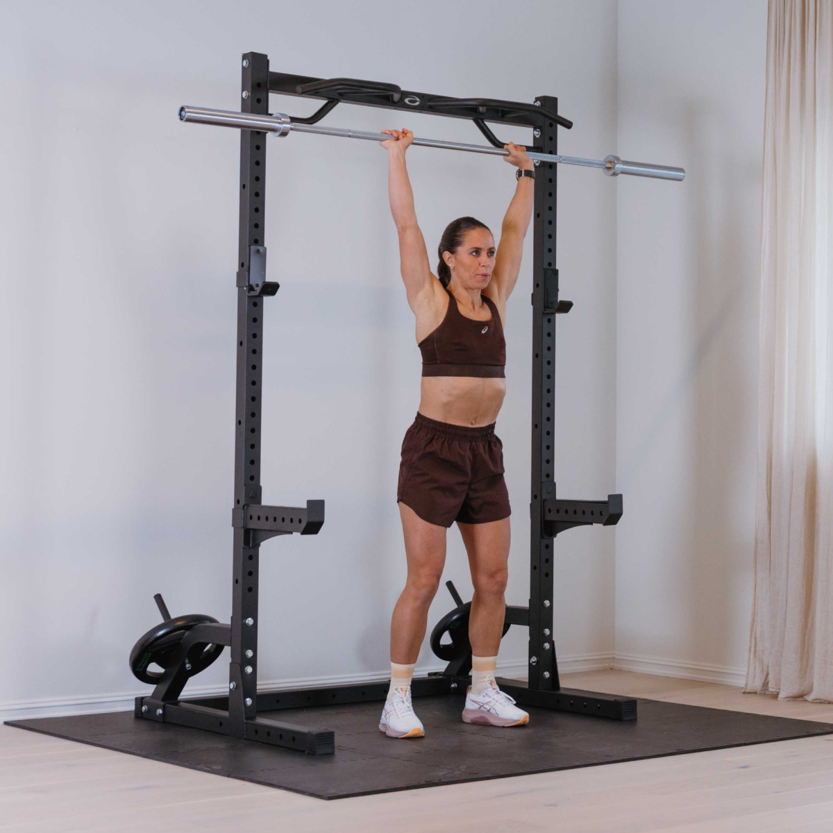 Vektstangen passer godt i stativer, half rack rack og er godt egnet til markløft, knebøy og benkpress. Vektstangen har en grepsdiameter på 25 mm med 1.2 mm hill serratering og en overflatebehandling av typen hardkrom.