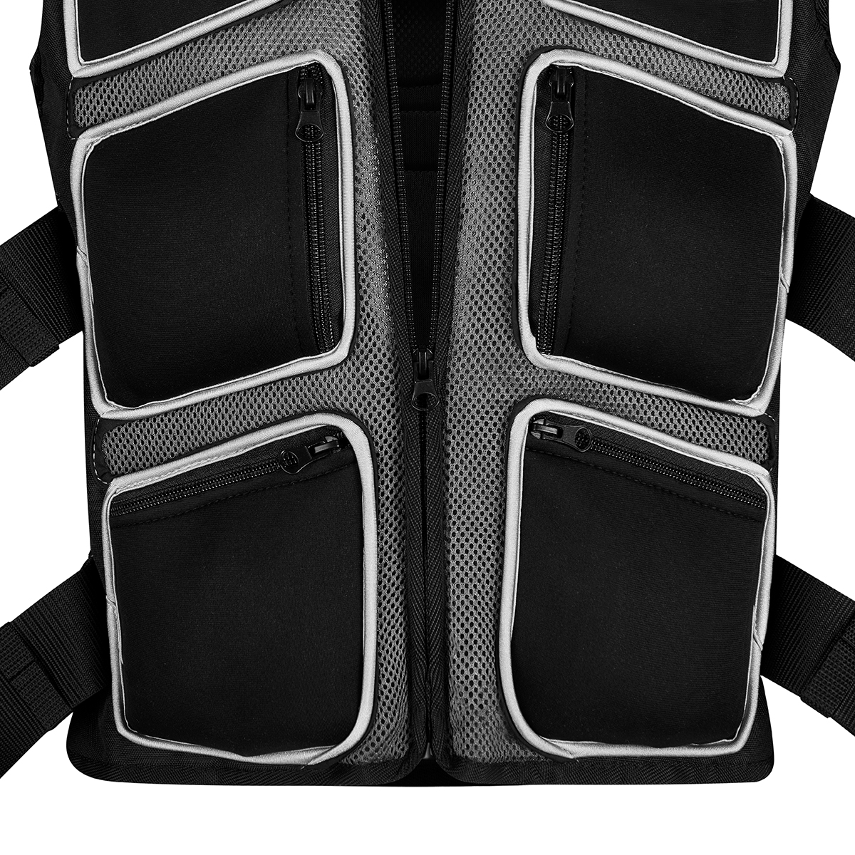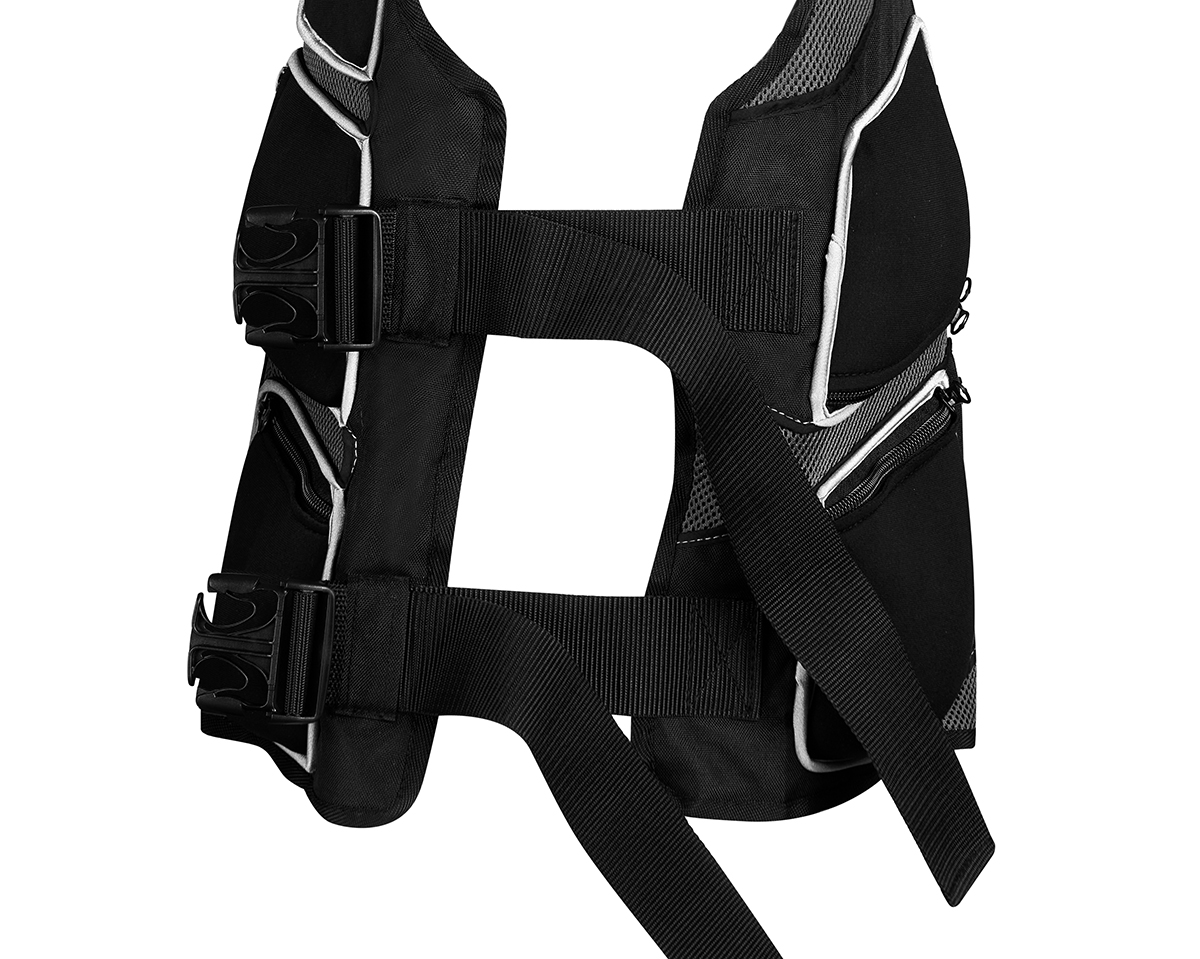 Vesten er utstyrt med 2 kraftige, 5 cm brede spenner som gir meget gode justeringsmuligheter og sørger for at vesten sitter tett og stabilt inn mot kroppen. Materialene er slitesterke, men samtidig myke og komfortable, med bla. luftig nettingstoff som gir god ventilasjon gjennom hele treningsøkten. Ekstra polstring på skuldrene gir økt komfort, selv under større bevegelser eller lengre økter. Vesten er designet med gjennomtenkte detaljer og refleks i både frontlogoen samt refleksbånd foran og bak, noe som gjør den trygg å bruke utendørs – også i mørket.