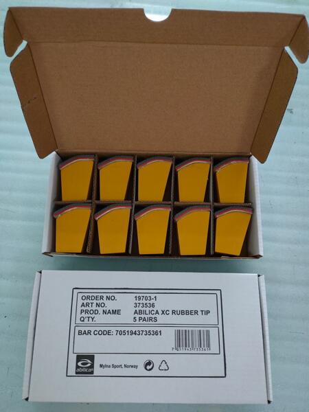 Stavpigger på vanlig skistav må byttes med denne type stavpigg for at ikke løpebåndet på rulleskimøllen skal bli ødelagt.