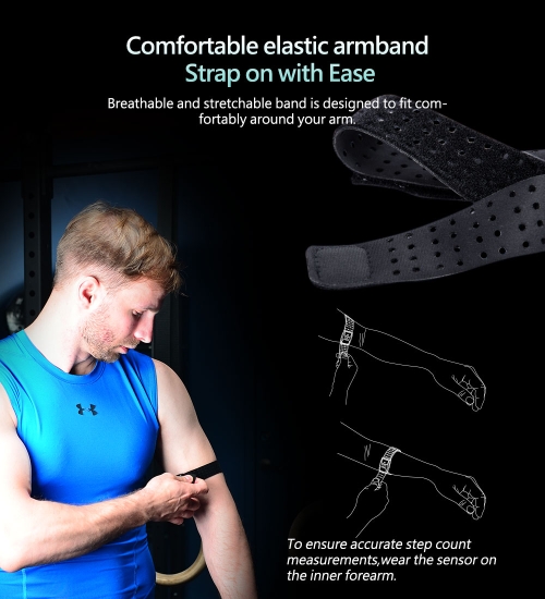 Designet for komfort og ytelse: sensoren og armbåndet veier under 20 gram, tåler vann (IPX7), og gir opptil 20 timers batteritid. Perfekt for både løping, sykling og allsidig trening.