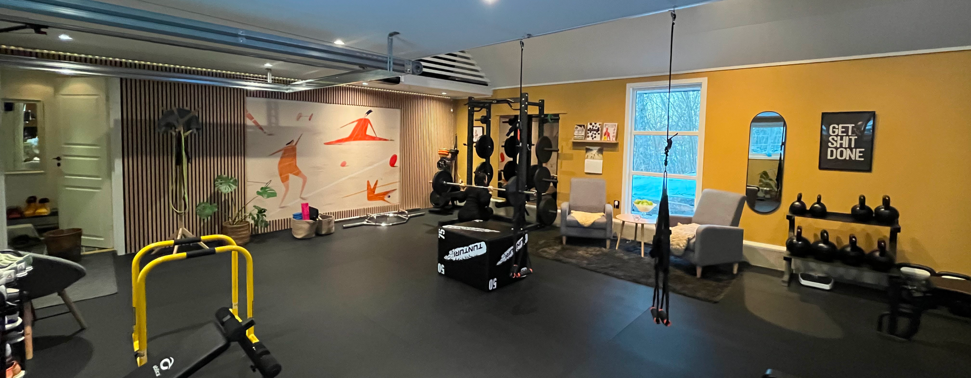 - Vi bestemte oss for å bygge treningsrom hjemme for å ha muligheten til å ha et trivelig og godt utstyrt hjemmegym som alltid er tilgjengelig. Vi bor et lite stykke fra nærmeste treningssenter, så egne treningsfasiliteter passer oss og familien perfekt!