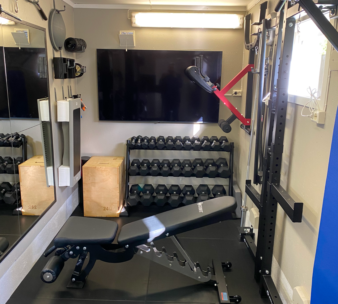At jeg nå har utstyr til å trene hele kroppen hjemme uten å måte bruke tid på å reise noe sted. Trener mye på morgenen fra 05.30 før jobb og barna skal vekkes/følges opp før de skal på skolen og dette hadde jeg ikke hatt mulighet uten vårt eget treningsrom.
