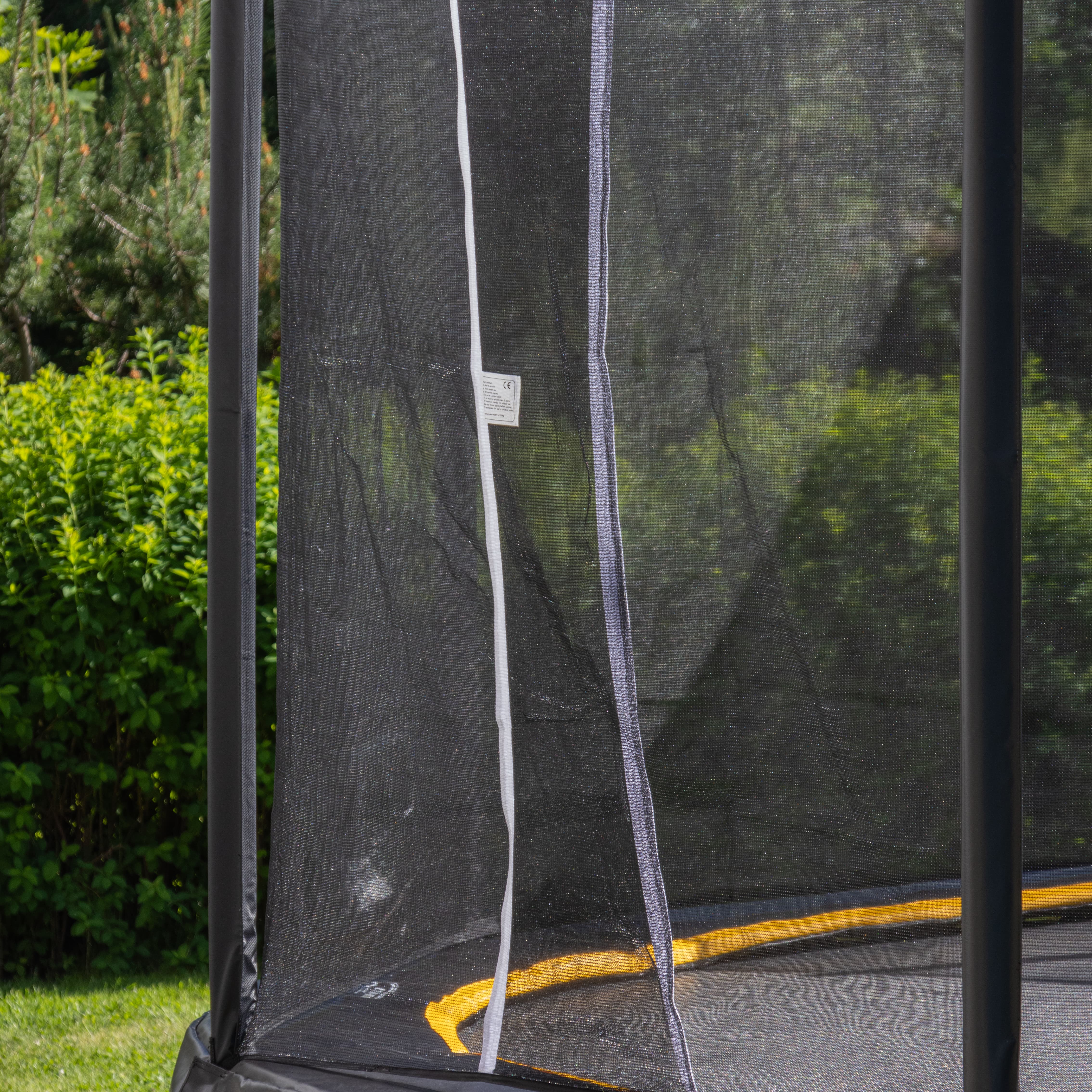 Kantpolstringen er hele 3 cm tykk med 36 cm bredde. Dette gir en stor sikkerhetssone når det hoppes og åpningen ned mot fjærene er veldig godt beskyttet. Med en overlappende inngangen unngår man utfordring med glidelåser som kan bli ødelagt eller ikke lukkes skikkelig, overlappende inngang gir en svært trygg og enkel tilgang inn på trampolinen.
