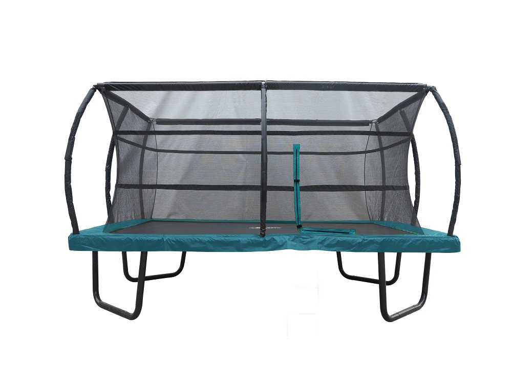 JumpMaster Rektangulær Trampoline 4.57 x 3 m. i grønn med sikkerhetsnett, stige og forankringssett er laget med fokus på sikkerhet og funksjonalitet!