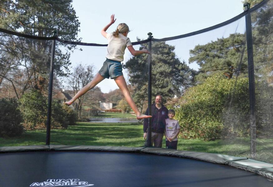 Jumpmaster Flexi 4.3 meter er en meget solid trampoline som gir barna alt de trenger for en trygg og morsom hoppeopplevelse. Med en diameter på 4.3 meter, solid sikkerhetsnett og medfølgende stige, er dette en trampoline som passer for hele familien – både små og store hoppere.