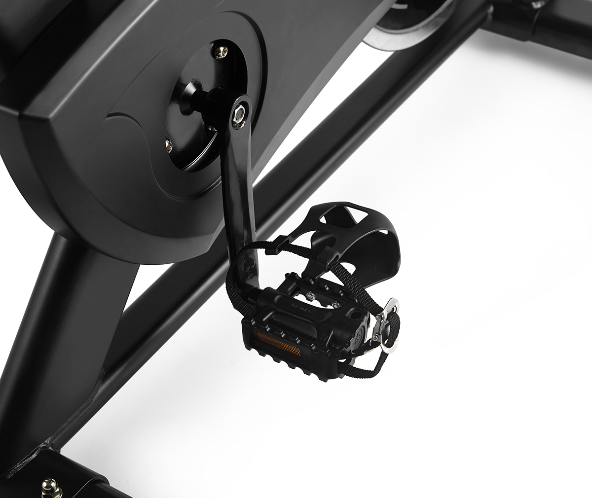 Spinningsykkelen kommer med transporthjul slik at du enkelt kan sette den vekk når den ikke er i bruk.
