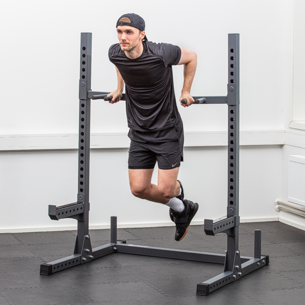 Masterfit Dip Attachment, våre benker og Landmine Attachment, som kjøpes separat, utvider øvelsesbiblioteket og gjør dette til et perfekt rack til ditt treningsrom.