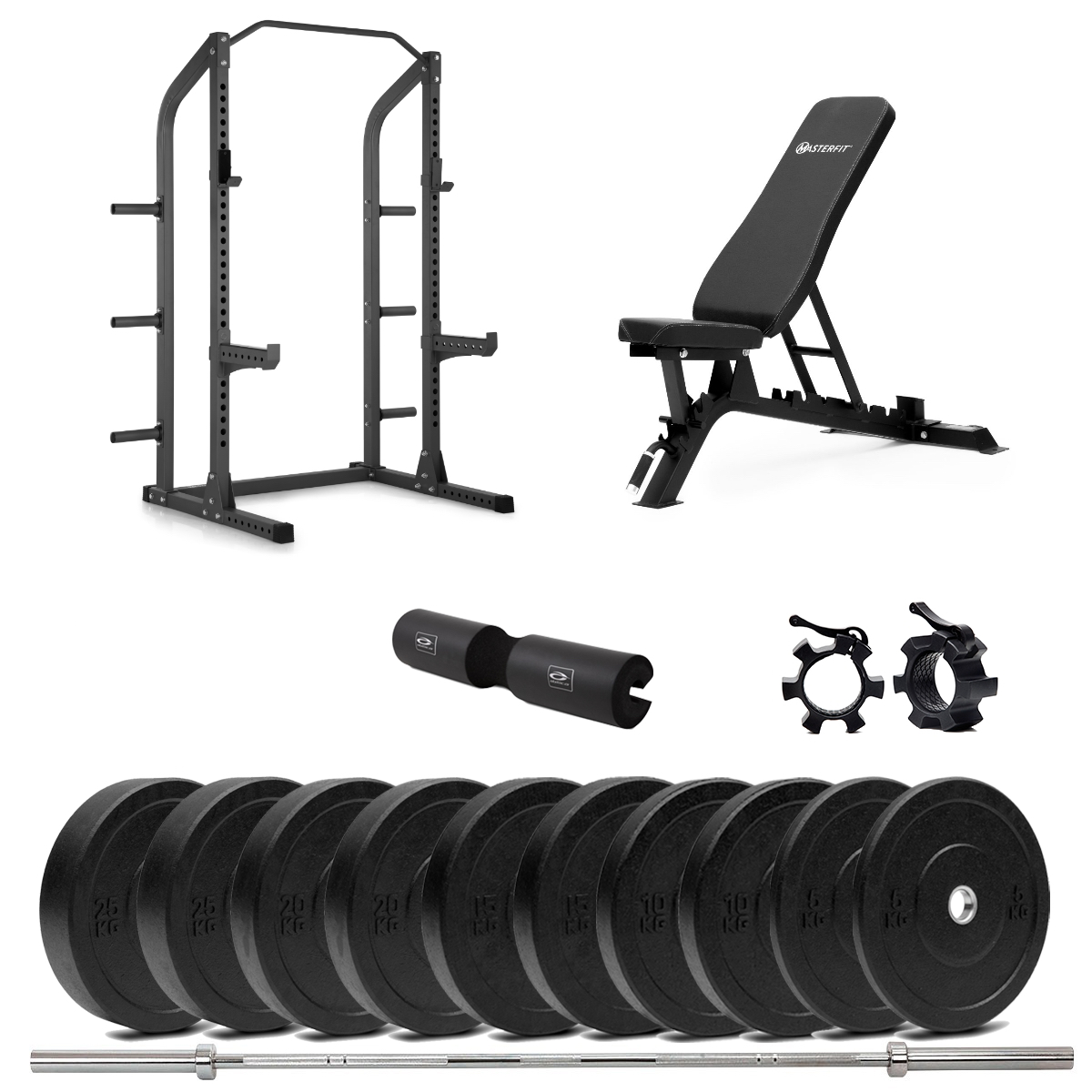 Komplett styrkepakke for hjemmetrening – Masterfit 300 Half Rack Bumper Styrkepakke - 150 kg