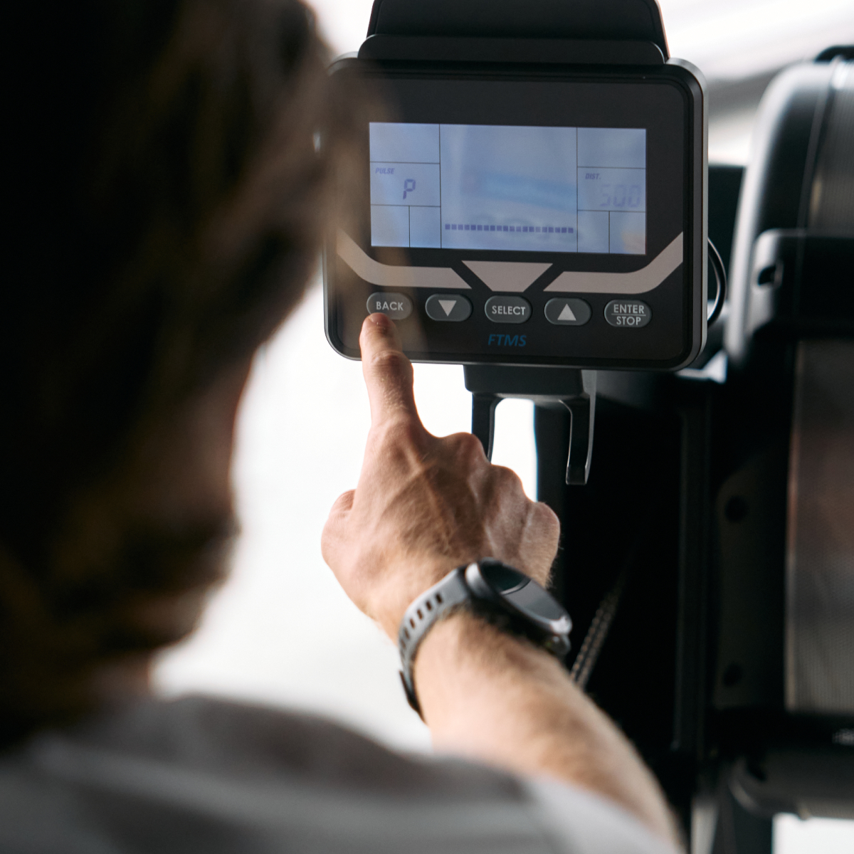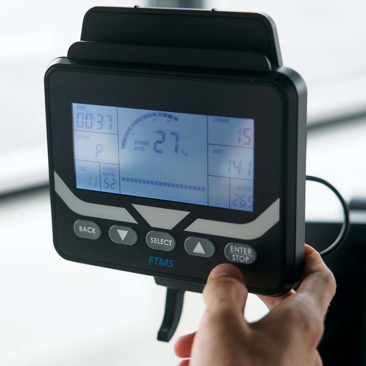 Leveres med en lettlest og oversiktlig treningscomputer som gir full kontroll over tid, distanse og kaloriforbruk, samt nøyaktige målinger av watt og gjennomsnittlig watt. Med sanntidsdata på tid per 500 meter, gjennomsnittlig tid per 500 meter, rotak per minutt og total rotak, kan du optimalisere hver treningsøkt.