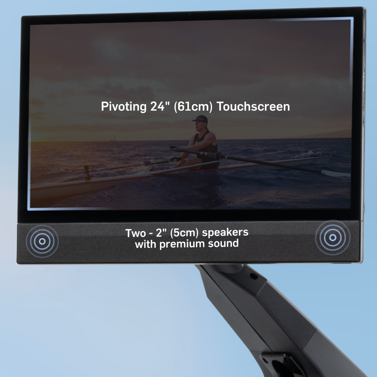 Du vil bli imponert over den store 24" skjermen som tar deg med rundt i hele verden. Den kan også svinges for trening både på og av romaskinen.