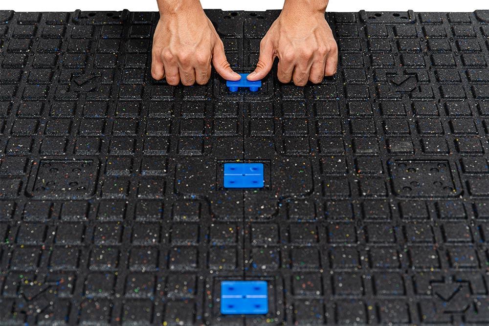 Anbefales å kjøpe med Connector for å koble sammen gulvet, anbefalt 7stk per kvm. Gulv mattene har rett kant og kan enkelt legges mot hverandre med connectors under. Om du ønsker å lage en skrå nedoverkant eller hjørne, så kan det kjøpes her: