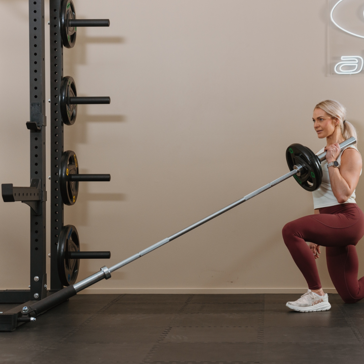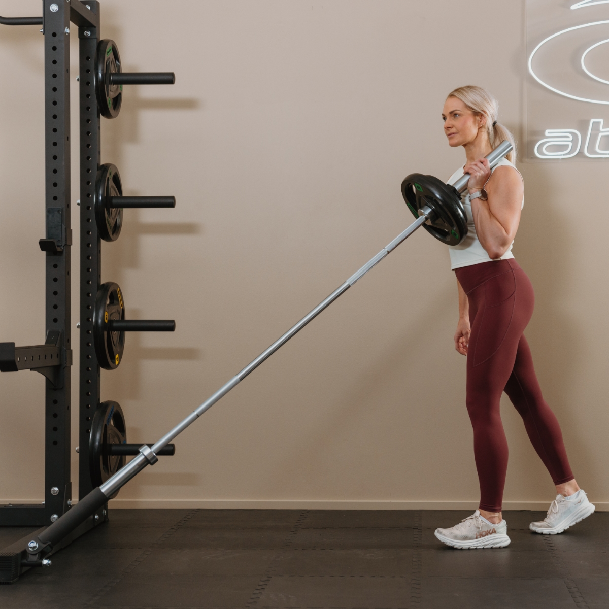 Produktet skrues enkelt på tilpasset rack ovenfor og passer til alle 50 mm vektstenger.